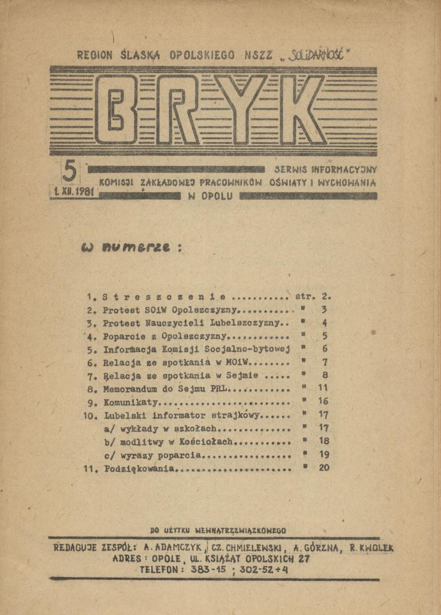 | Instytucja sprawcza: | Niezależny Samorządny Związek Zawodowy Solidarność - Region Śląska Opolskiego - Sekcja Oświaty i Wychowania - Komisja Zakładowa |