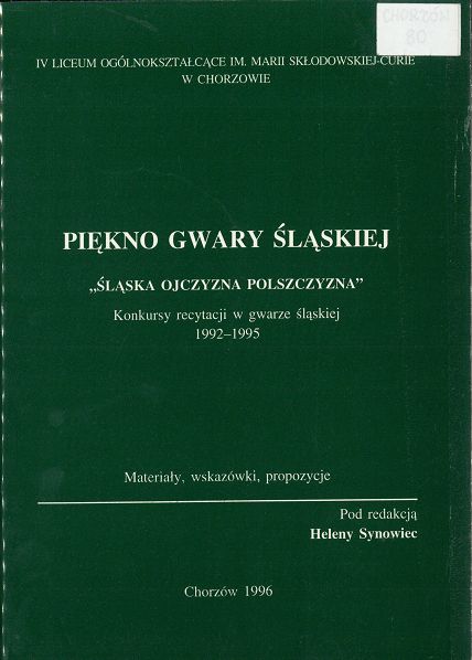 | Inne tytuły: | konkursy recytacji w gwarze śląskiej 1992-1995 materiały, wskazówki, propozycje |