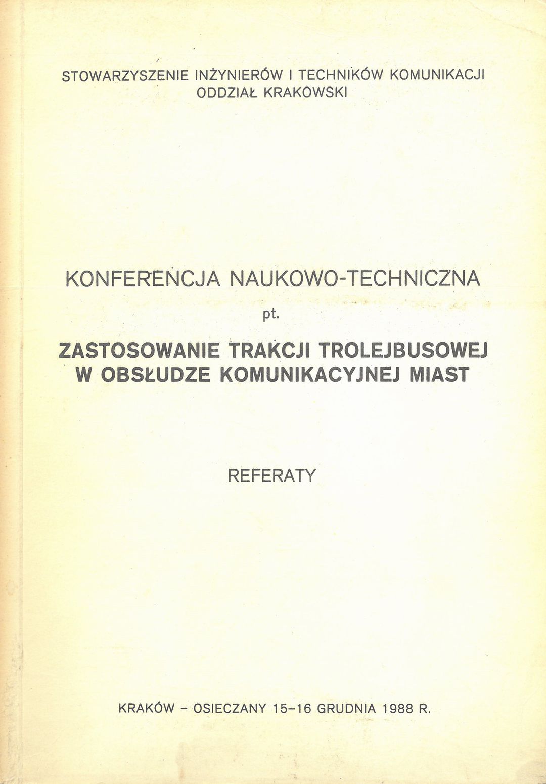 | Inne tytuły: | Kraków-Osieczany 15-16 grudnia 1988 r referaty |