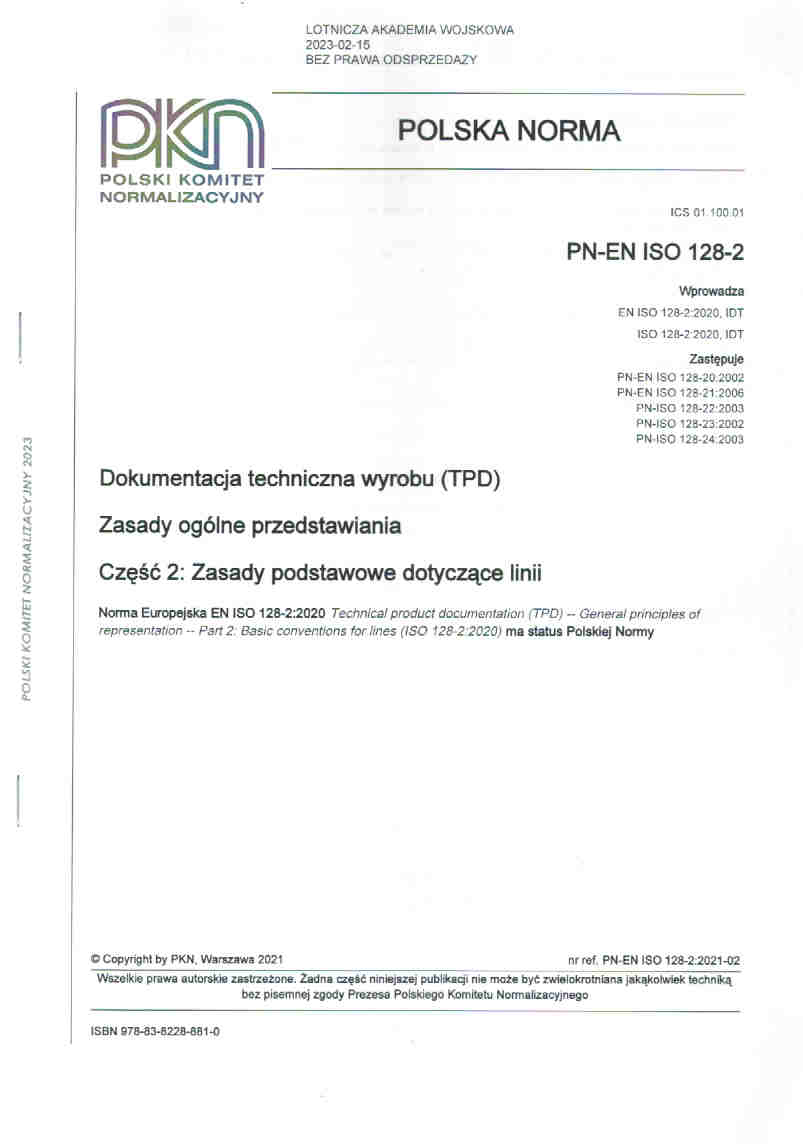 | Inne tytuły: | Dokumentacja techniczna wyrobu (TPD) Cz. 2, PN-EN ISO 128-2 |