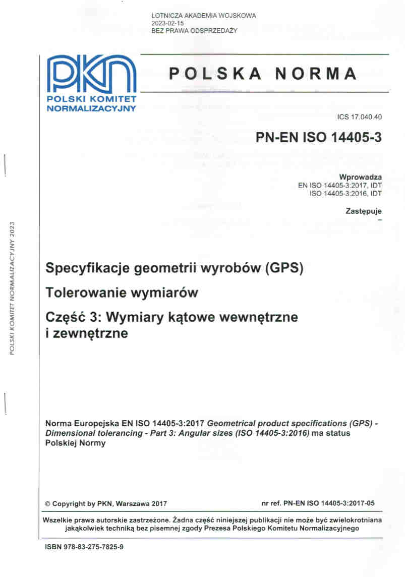 | Inne tytuły: | PN-EN ISO 14405-3 Specyfikacje geometrii wyrobów (GPS) Cz. 3, |