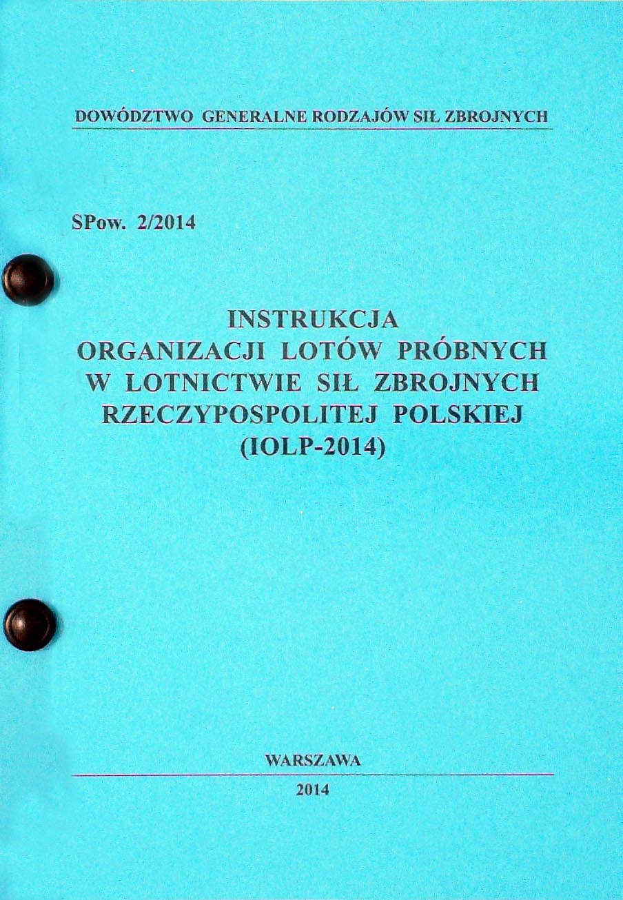 Instrukcja organizacji lotów próbnych w lotnictwie Sił Zbrojnych Rzeczypospolitej Polskiej (IOLP-2014)