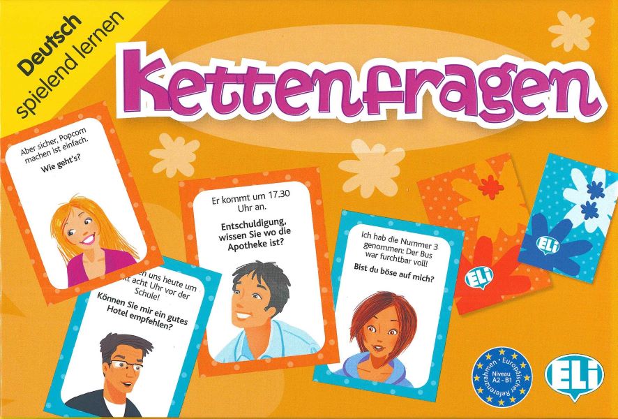 Gra językowa Kettenfragen - edukacyjna gra w karty do nauki niemieckiego, gra do nauki mówienia - praktyczne dialogi i zwroty konwersacyjne: pytania i odpowiedzi, minirozmówki. Gra z instrukcjami w językach niemieckim i polskim oraz dodatkową kostką do gry. Kettenfragen jest grą językową ukierunkowaną na naukę zadawania pytań i prowadzenia mini-dialogów w języku niemieckim, jak również na utrwalenie znajomości różnych form czasownikowych. Gra polega na dopasowywaniu do siebie pytań i odpowiedzi znajdujących się na wylosowanych przez graczy kartach. mini_gra_jezykowa_eli_kettenfragen_ins.jpg Charakter gry (wiodący typ gry): gra w karty, karciana Poziom trudności: początkujący i średnio zaawansowany A2-B1 (przy użyciu oddzielnych zestawów kart) Przedział wiekowy: dzieci od 8 roku życia, młodzież, dorośli Ilość proponowanych wariantów rozgrywki: 4 (+3 przy użyciu dodatkowej kostki) Jeden z możliwych scenariuszy prowadzenia rozgrywki: Należy potasować i rozdać uczestnikom karty. Osoba rozpoczynająca grę czyta pytanie znajdujące się na dowolnie wybranej przez siebie karcie, a zadaniem pozostałych graczy jest odnalezienie w możliwie najkrótszym czasie poprawnej odpowiedzi znajdującej się na innej karcie. Osoba, która odnajdzie na jednej ze swoich kart prawidłową odpowiedź, odczytuje ją, a następnie czyta znajdujące się poniżej pytanie, na które odpowiedzi szukają pozostali gracze. Prawidłowa odpowiedź na ostatnie pytanie z serii znajduje się zawsze na tej samej karcie, której pytanie zapoczątkowało grę. Osobą kończącą prawidłowo przeprowadzoną rozgrywkę będzie więc zawsze osoba, która zadała pierwsze pytanie. Tematyka i cele językowe: nauka form pytających i zadawania pytań po niemiecku, nauka czasów gramatycznych oraz słownictwa języka niemieckiego, nauka prowadzenia konwersacji w formie krótkich dialogów, nauka niektórych wyrażeń idiomatycznych. Gra znajduje zastosowanie: - w nauczaniu języka niemieckiego w szkole podstawowej (pierwszy język obcy nowożytny w klasach od 4 do 8; drugi język obcy nowożytny w klasach od 7 do 8; dodatkowy język nieobowiązkowy w klasach od 4 do 8), - w szkole ponadpodstawowej (liceum, technikum) w klasach 1, 2 i 3, - w szkołach językowych realizujących kursy języka niemieckiego na poziomach A2 i B1, - w warunkach domowych (zabawy z przyjaciółmi i rodziną, gry towarzyskie lub prywatne lekcje języka niemieckiego). Dodatkowe korzyści: Gra Kettenfragen doskonali sprawności umysłowe takie jak pamięć, koncentracja i spostrzegawczość, sprzyja skutecznemu zapamiętywaniu oraz uczy aktywności i zdrowej rywalizacji, a jej ludyczny charakter pomaga w nawiązywaniu relacji społecznych z pozostałymi uczestnikami gry oraz wpływa pozytywnie na zredukowanie dystansu pomiędzy uczniem i uczącym. Instrukcje: obok instrukcji w języku niemieckim do gry dołączono instrukcję w języku polskim zawierającą: - wprowadzenie metodyczne dla nauczycieli, rodziców oraz samych graczy, - rozbudowane scenariusze rozgrywek, - propozycje zabaw i ćwiczeń edukacyjnych. Dodatkowa instrukcja w języku polskim to również udogodnienie dla osób nie znających języka obcego w stopniu wystarczającym do zapoznania się z oryginalną, niemieckojęzyczną wersją instrukcji, a także możliwość samodzielnego pokierowania zabawami językowo-edukacyjnymi z dziećmi lub rówieśnikami. Dodatkowa kostka: Gra wzbogacona została o nowe warianty rozgrywek dzięki zastosowaniu dodatkowej kostki rozszerzającej zakres edukacyjny gry. Gra opracowana została w oparciu o kryteria Europejskiego Systemu Opisu Kształcenia Językowego (Gemeinsamer Europäische Referenzrahmen) - poziom A2-B1 Zestaw zawiera: -dwie talie kart z pytaniami i odpowiedziami (każda po 66 sztuk) -broszurę metodyczną w języku niemieckim, -broszurę metodyczną w języku polskim, -dodatkową kostkę do gry. Format 21,5x14,5 cm Opakowanie: eleganckie kartonowe pudełko, folia ISBN 9788853604729 Wydawnictwo ELI & ET TOI