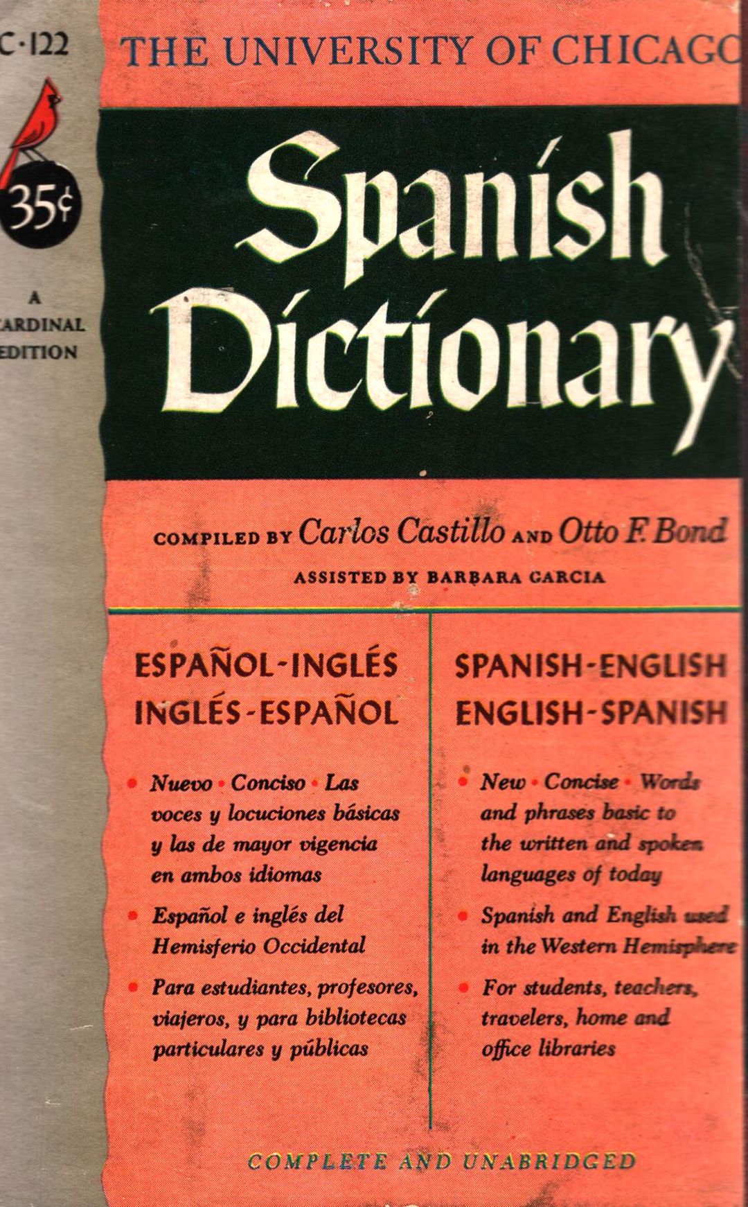 | Inne tytuły: | new concise Spanish - English and English - Spanish dictionary of words and phrases basic to the written and spoken languages of today Universidad de Chicago Diccionario Inglés - Espaňol y Espaňol - Inglés un nuevo y conciso diccionario que contiene las voces y locuciones básicas de ambos idiomas |
