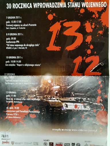 30 rocznica wprowadzenia stanu wojennego (13 grudnia 1981 r.):
