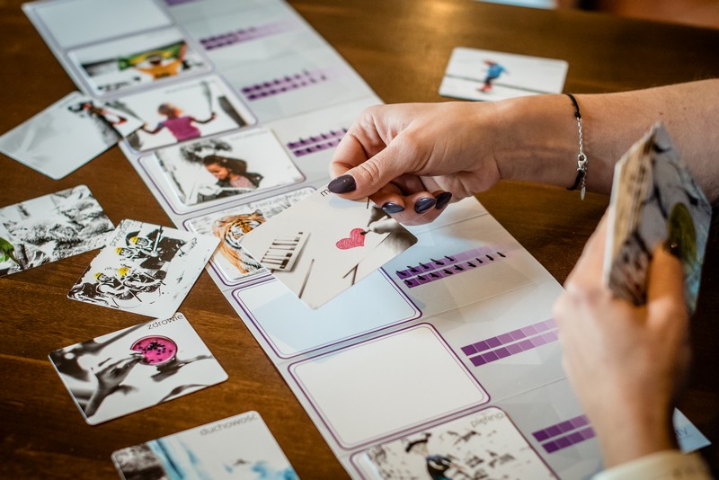Czym są karty wartości i emocji? Karty wartości oraz plansza ze skalą, pozwalają sprawdzić, na ile konkretne wartości są respektowane w obecnej chwili w sytuacji klienta, a na ile powinny być respektowane, aby klient funkcjonował w najlepszym możliwym dobrostanie. Koło emocji Roberta Plutchika oraz 32 karty odpowiadające emocjom opisanym w kole, to doskonałe narzędzie do pracy, w szczególności w sytuacji, kiedy klient w coachingu ma trudność z podjęciem decyzji. Narzędzie pozwala uświadomić klientowi, jakie emocje wiążą się z każdą z rozważanych przez niego opcji, i umożliwia wybranie najlepszej. Dlaczego Simplic!ty Coaching Tools? Simplicity (ang. Prostota). Marka zaprojektowana specjalnie dla osób, które zajmują się rozwojem innych ludzi – coachów, trenerów, menadżerów czy terapeutów. Stworzona z potrzeby porządkowania i upraszczania tego, co w rozwoju ludzi, na pierwszy rzut oka, wydaje się być skomplikowane. W Simplicity wierzymy, że „mniej oznacza więcej”. Że nie jesteśmy w stanie poznać i zrozumieć wszystkiego, ale wystarczy czasem się zatrzymać, spojrzeć na rzeczy najważniejsze, złapać równowagę i pewność, a potem działać dalej. Narzędzia, które Ci oferujemy pozwolą Tobie i Twoim klientom obejrzeć ich złożony świat w maksymalnie prosty sposób, by dzięki temu usprawnić proces podejmowania decyzji i działań. Niezależnie, czy pracujesz z klientem indywidualnym, grupą, czy zespołem. Zaprojektowane w minimalistycznej formie, z dbałością o detale i dokładnie rozpisanymi instrukcjami stosowania. Wystarczy, że rozpakujesz, zapoznasz się z instrukcją i możesz pracować. A z czasem i tak zaczniesz modyfikować nasze narzędzia do celów, które przyjdą Ci do głowy.