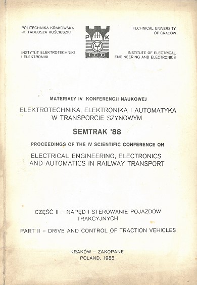 | Inne tytuły: | materiały IV konferencji naukowej, Semtrak '88 Drive and control of traction vehicles |
