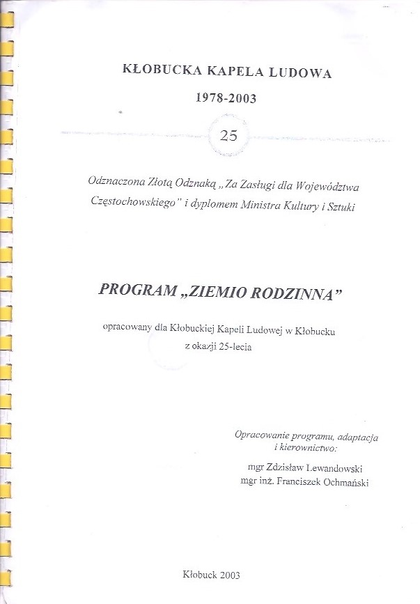 opracowany dla Kłobuckiej Kapeli Ludowej w Kłobucku z okazji 25-lecia