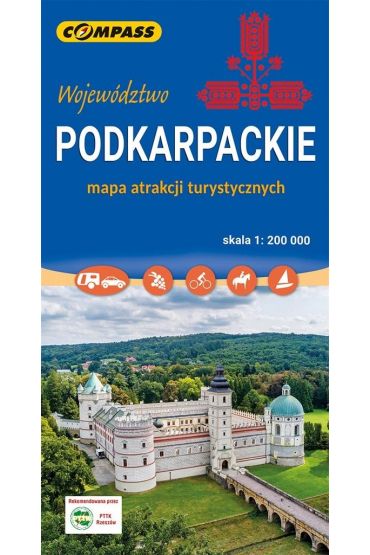 Rodzaj: mapa samochodowo-krajoznawcza, jednostronna, z przewodnikiem turystycznym na odwrocie Skala: 1:200 000 Rok wydania: 2024 Wydanie: 7 Format: B1 (68 x 98 cm) Atrakcje Podkarpacia pokazano na mapie samochodowej. Ułatwia więc zwiedzanie Podkarpacia zmotoryzowanym turystom. Obejmuje jeden z najbardziej atrakcyjnych turystycznie, a jednocześnie wciąż jeszcze mało znanych zakątków Polski. Zasięg mapy wyznaczają: Sandomierz na północy, Gorlice na zachodzie, granica polsko-słowacka na południu i polsko-ukraińska na wschodzie. Wrażenie, jakie wywierają podkarpackie krajobrazy, nie ma sobie równych. Podkarpacie to rozciągająca się kraina pociętych w szachownicę pól i lasów Kotliny Sandomierskiej, bieszczadzkich połonin i wzgórz Beskidu Niskiego, pogórzy: Ciężkowickiego, Dynowskiego, Strzyżowskiego, Przemyskiego, wzniesień Roztocza, wreszcie dolin największych na południowym wschodzie rzek: Wisły, Sanu, Wisłoka i Wisłoki. Walory przyrodniczo-krajobrazowe, liczne zabytki wiekowych miast (Przemyśla, Sanoka, Jarosławia, Krosna), drewniane kościoły i cerkwie, synagogi, pałace, zamki i dwory przyciągają licznych turystów nie tylko z kraju, ale i z zagranicy. Renesansowe zamki w Baranowie Sandomierskim i Krasiczynie należą do najcenniejszych zabytków tej epoki w Polsce. Świątynie w Bliznem, Haczowie, Radrużu, Turzańsku, Smolniku i Chotyńcu to perły drewnianej architektury sakralnej znajdujące się na Liście Światowego Dziedzictwa UNESCO. Niniejsza mapa to propozycja dla wszystkich, którzy poszukują ogólnych i poglądowych informacji o regionie podkarpackim. Mapę polecamy w szczególności turystom zmotoryzowanym. Na mapie wyeksponowano 101 najciekawszych atrakcji Podkarpacia: zabytki, obiekty i osobliwości przyrodnicze. Na odwrocie mapy znajduje się ich krótki opis. Jest to mapa jednostronna w skali 1:200000.