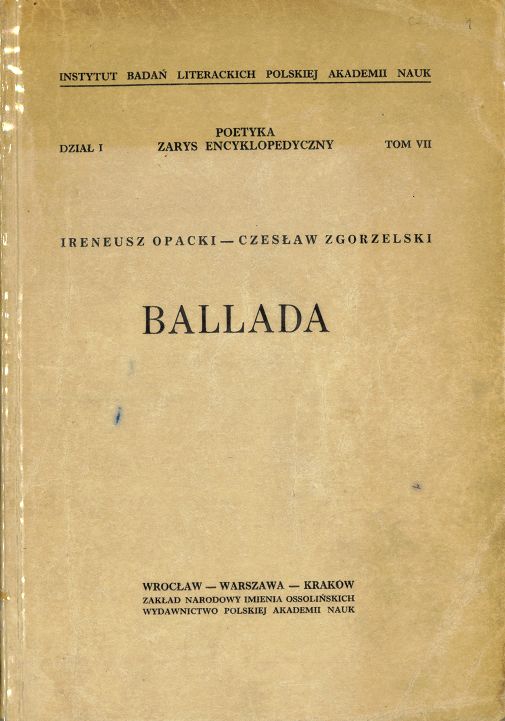 | Inne tytuły: | Ballada Gatunki literackie Gatunki wierszowane Nowożytne gatunki fabularne zarys encyklopedyczny Poetyka Dział 1, |