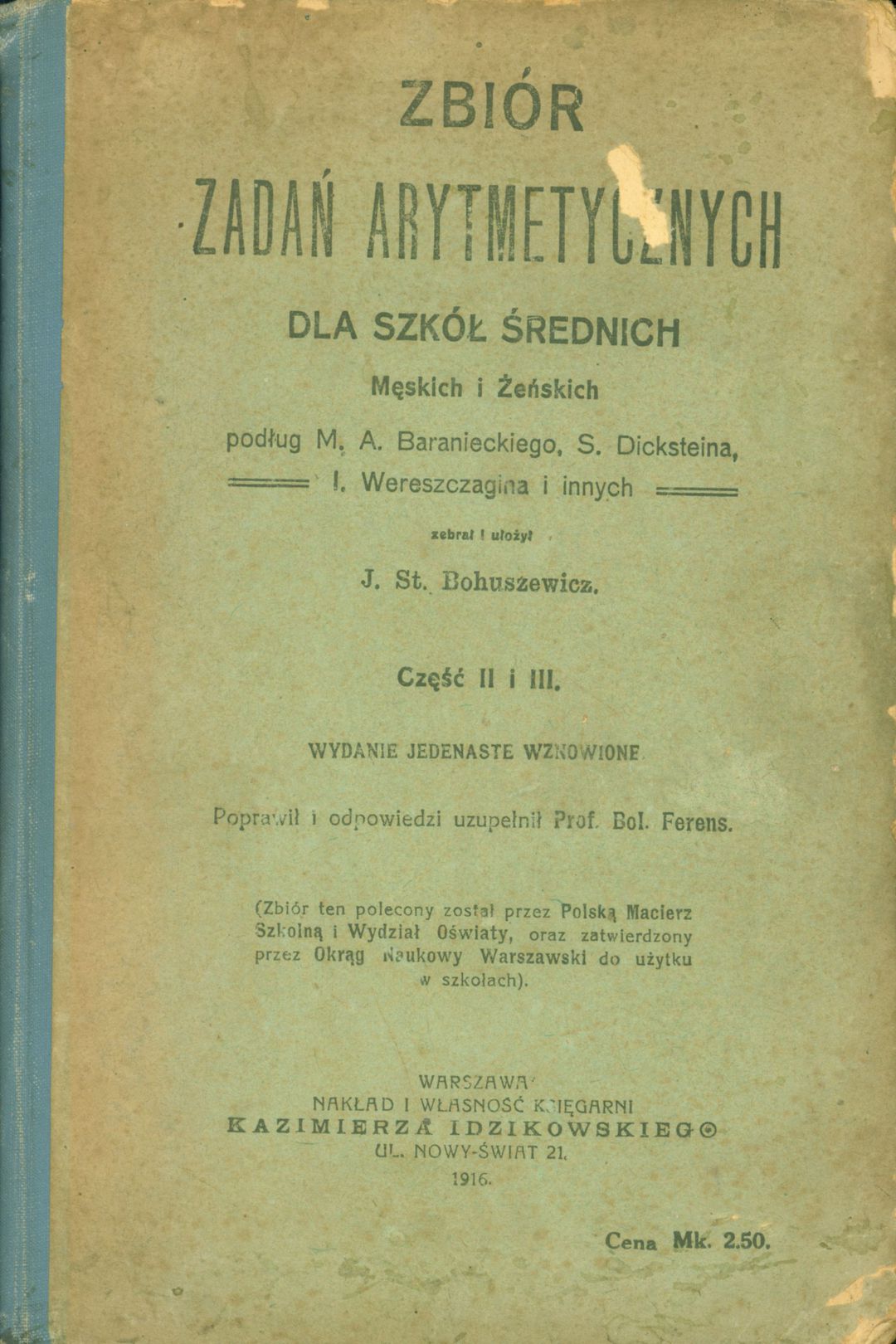 | Inne tytuły: | Zbiór zadań arytmetycznych dla szkół średnich męskich i żeńskich Cz. 2 i 3 |