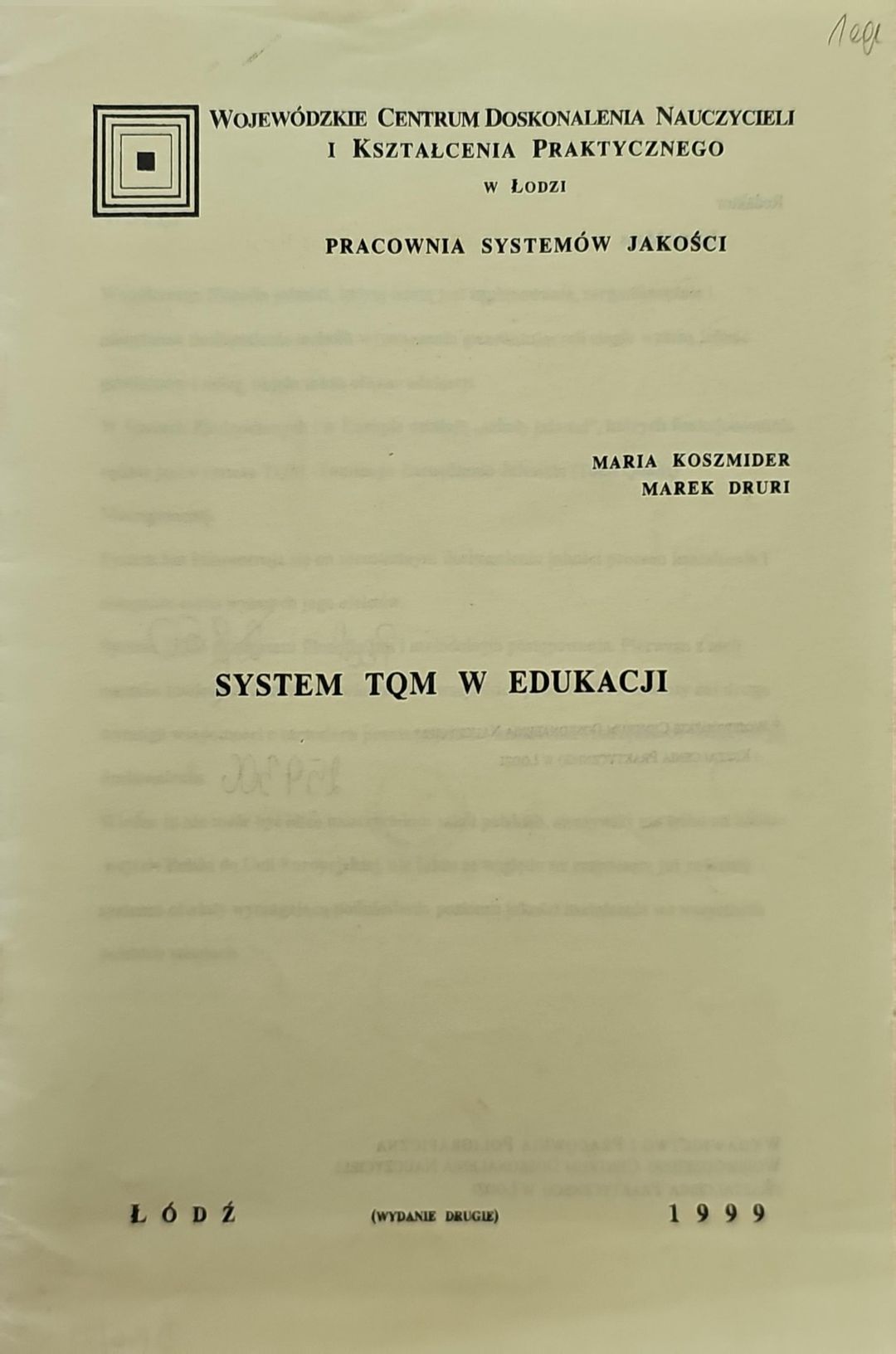 | Instytucje sprawcze: | Wojewódzkie Centrum Doskonalenia Nauczycieli i Kształcenia Praktycznego w Łodzi Pracownia Systemów Jakości |