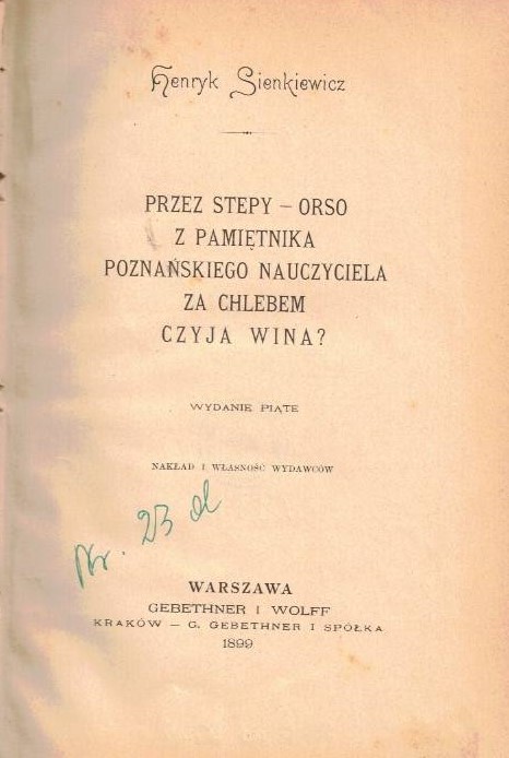 | Wydane w seriach: | Pisma Henryka Sienkiewicza |