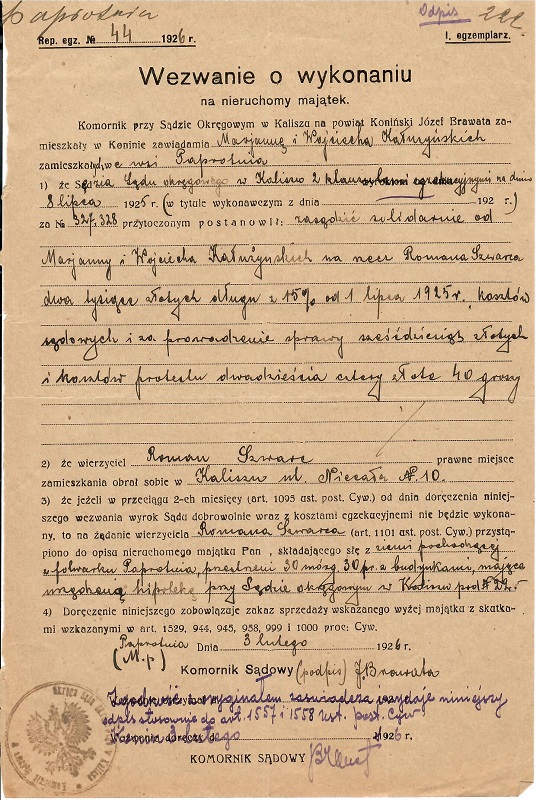 Wezwanie o wykonaniu na nieruchomy majątek