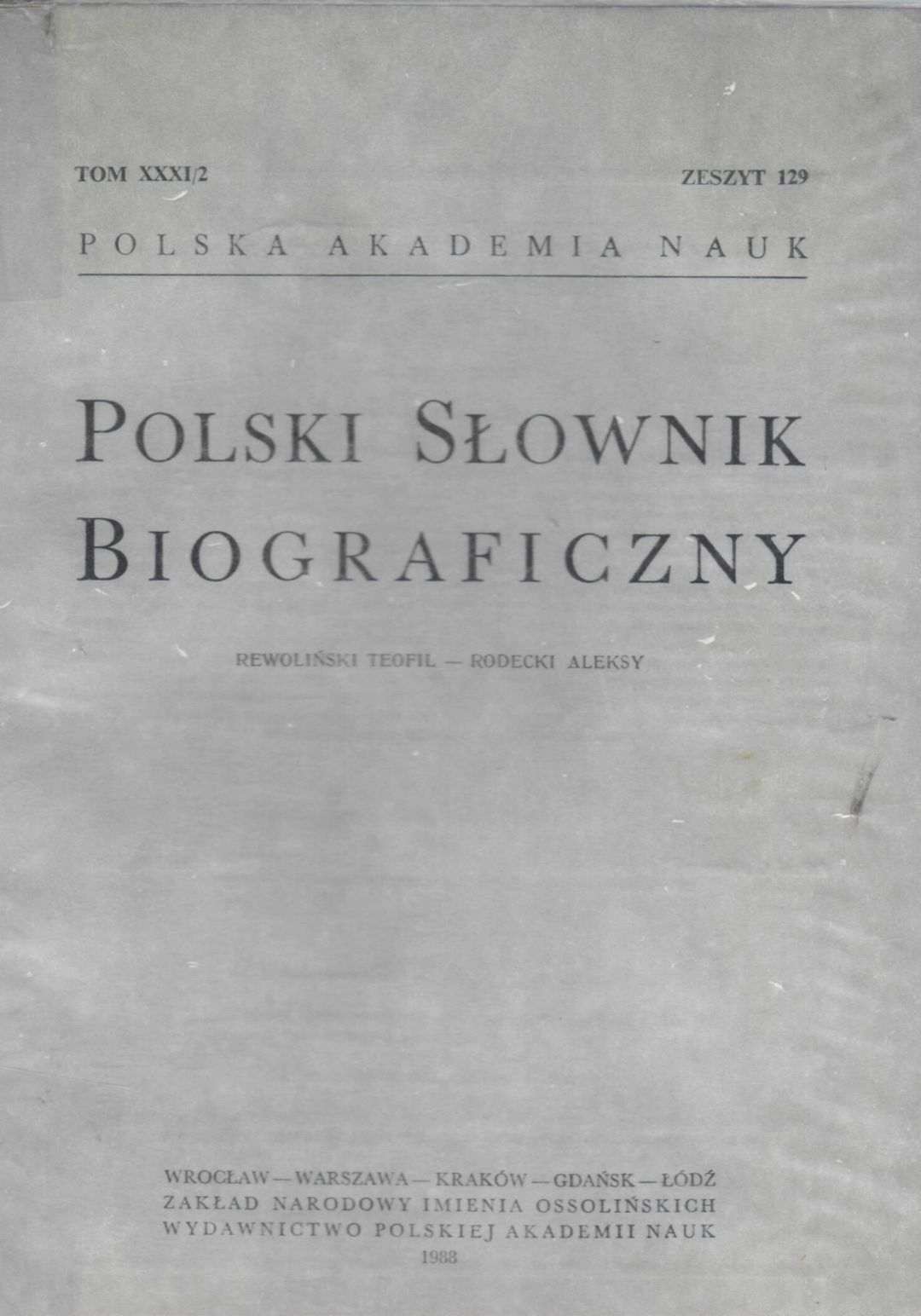 Polski słownik biograficzny. T. 31/2, Z. 129, Rewoliński Teofil - Rodecki Aleksy