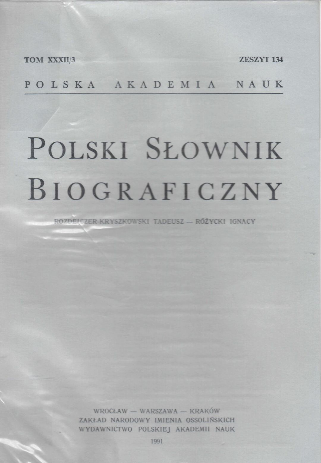 Polski słownik biograficzny. T. 32/3. Z. 134, Rozdeiczer-Kryszkowski Tadeusz - Różycki Ignacy