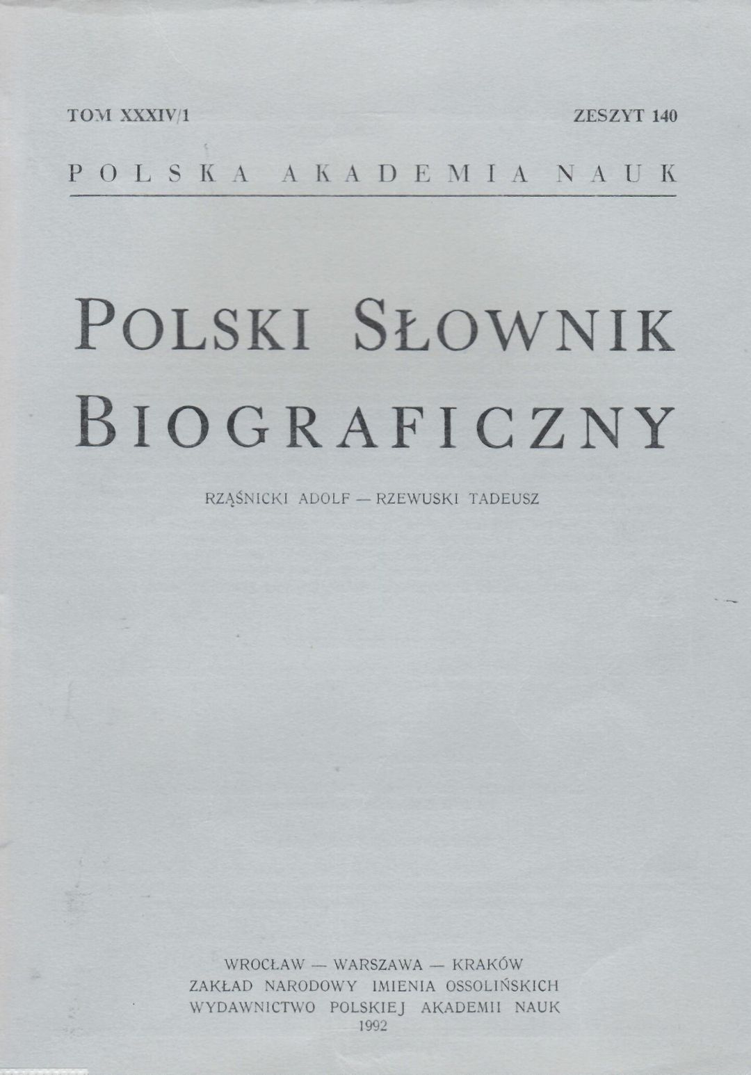 Polski słownik biograficzny. T. 34/1. Z. 140, Rząśnicki Adolf - Rzewuski Tadeusz