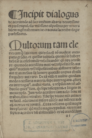 Dialogus rationis et conscientiae de frequenti usu communionis