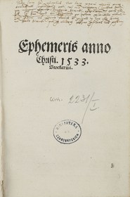 Ephemeris anno Christi 1533 Stoeflerini