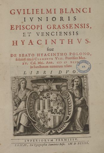 Gvilielmi Blanci Ivnioris Episcopi Grassensis, Et Venciensis, Hyacinthvs: siue De Beato Hycintho Polono, solenni ritu à Clemente VIII. Pontifice Max. XV. Cal. Mai. Ann. MDXCIV. in Sanctorum numerum relato, Libri Dvo