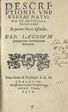 Descriptionis vniversae natvrae ex Aristotele. prior pars in quator libros distincta
