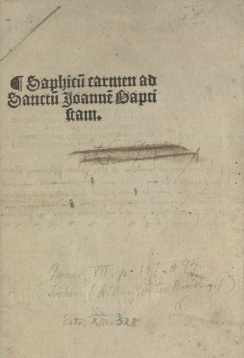 Saphicu[m] carmen ad Sanctu[s] Joanne[m] Baptistam