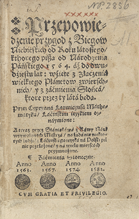 Przepowiedzenie przygod z Biegow Niebieskich od Roku latosiego, kthorego piszą od Narodzenia Pańskiego 1564 aż do dwudziestu lat:
