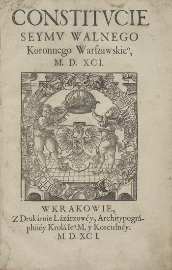 Constitvcię seymv walnego koronnego warszawskiego M.D.XCVIII