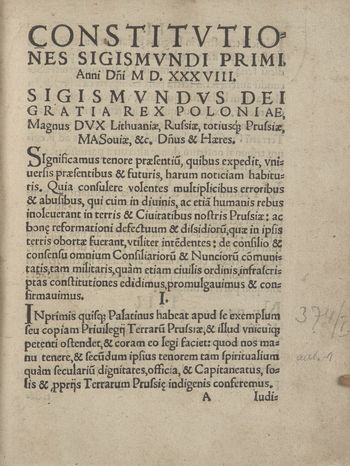 Constitvtiones Sigismvndi Primi, Anni Dni MD.XXXVIII
