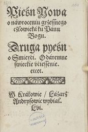 Pieśn Nowa o nawroceniu grzessnego czlowieka ku Panu Bogu: