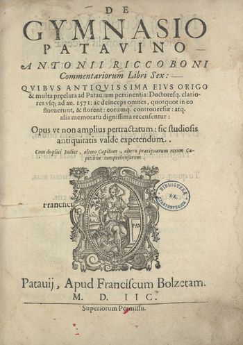 De Gymnasio Patavino Antonii Riccoboni Commentariorum Libri Sex: