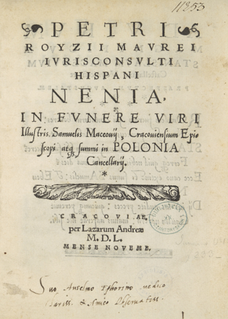Nenia, in fvnere viri Illustris Samuelis Maceouij, Cracouiensium Episcopi atq summi in Polonia Cancellarij