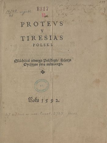 | Inne tytuły: | Proteus i Tiresias polski szlachcica jednego polskiego, szczerze Ojczyznę swą miłującego |