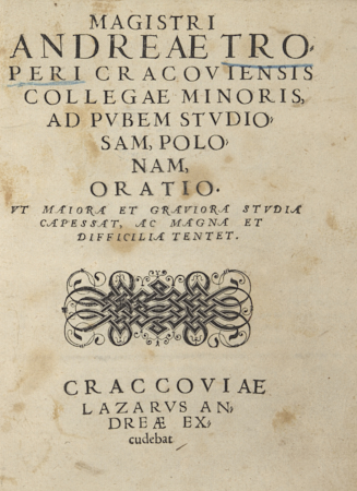 Magistri Andreae Troperi Cracoviensis Collegae minoris ad pvbem stvdiosam polonam, oratio