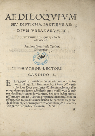 Aediloqvivm sev disticha, partibvs aedivm vrbanarvm et rusticarum suis quaeque locis adscribenda