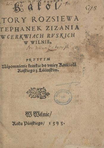| Inne tytuły: | Kąkol, który rozsiewa Stafanek Zizania w cerkwiach ruskich w Wilnie |