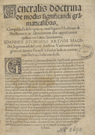 Generalis doctrina de modis significandi grãmaticalibus [...]