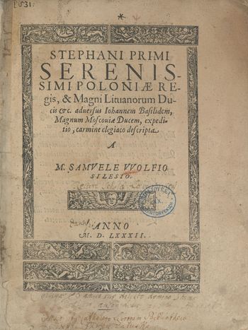 Stephani Primi Serenissimi Poloniae Regis [...] aduersus Iohannem Basilidem, Magnum Moscouiae Ducem expeditio, carmine elegiaco descripta