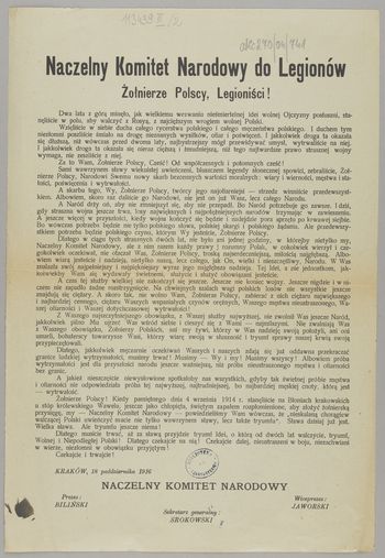 Naczelny Komitet Narodowy do Legionów: