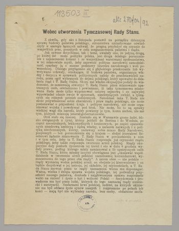 Wobec utworzenia Tymczasowej Rady Stanu