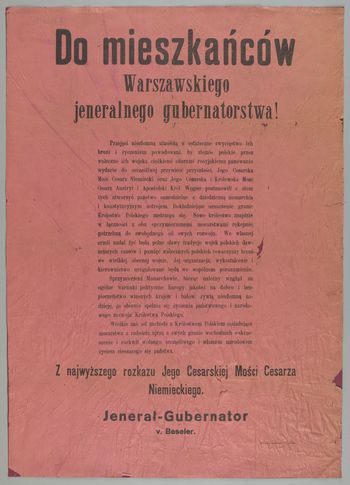 Do mieszkańców Warszawskiego jeneralnego gubernatorstwa!