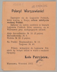 | Inne tytuły: | Zapisujcie sie do Legionów Polskiech, które walczą z Rosyą [...] |