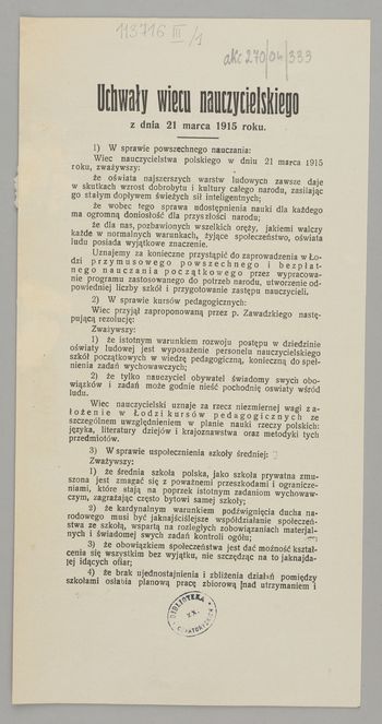 Uchwały wiecu nauczycielskiego z dnia 21 marca 1915 roku