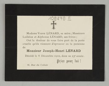 [Nekrolog. Incipit] Madame Veuve Lénard, sa mère, [...] Monsieur Joseph-Henri Lénard [...]