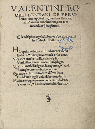 Valentini Ecchii Lendani, De versificandi arte opusculum, omnibus studiosis, ad poeticam anhelantibus, non tam iucundum q. frugiferum