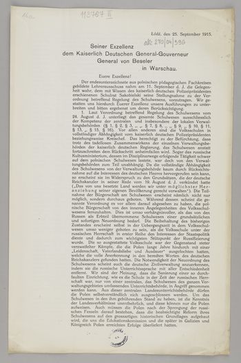 Seiner Exzellenz dem Kaiserlich Deutschen General-Gouverneur General von Beseler in Warschau