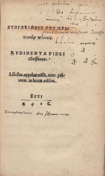 | Inne tytuły: | Rvdimenta Fidei Christianæ Stoicheiōsis tēs Chrisianōm [sic] piseōs |