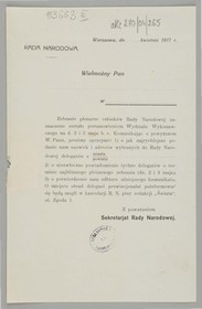 | Inne tytuły: | Zebranie plenarne członków Rady Narodowej naznaczone zostało [...] Wielmożny Pan ... w ... Zebranie plenarne członków Rady Narodowej naznaczone zostało [...] |