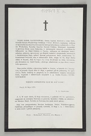 [Nekrolog. Incipit] Xiądz Karol Kaczanowski, dawny kapitan artylerii z roku 1831, [...]