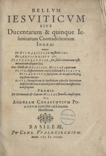 Bellvm Iesviticvm Sive Ducentarum & quinque Iesuiticarum Contradictionum Index